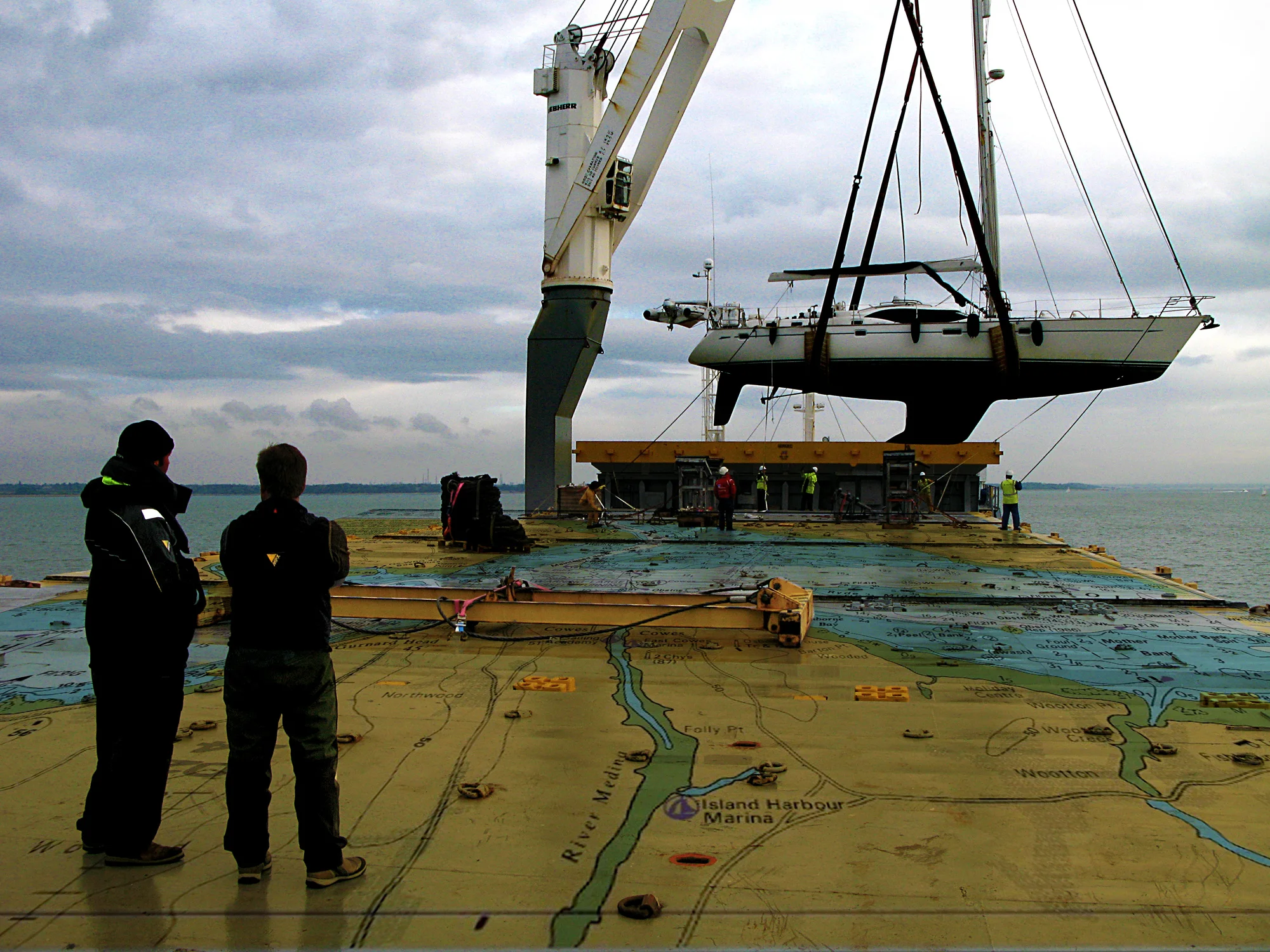 Had a bit of fun yesterday. We caught a rib from Lymington to board a ship in the Solent to then crane an Oyster yacht off and into Hamble. A new one for us, but perfect conditions